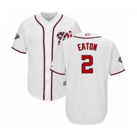 Youth Washington Nationals #2 Adam Eaton Authentic White Home Cool Base 2019 World Series Champions Baseball Jersey