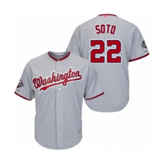 >Youth Washington Nationals #22 Juan Soto Authentic Grey Road Cool Base 2019 World Series Champions Baseball Jersey