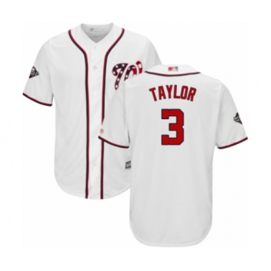 Men's Washington Nationals #3 Michael Taylor White Home Flex Base Authentic Collection 2019 World Series Champions Baseball Jersey