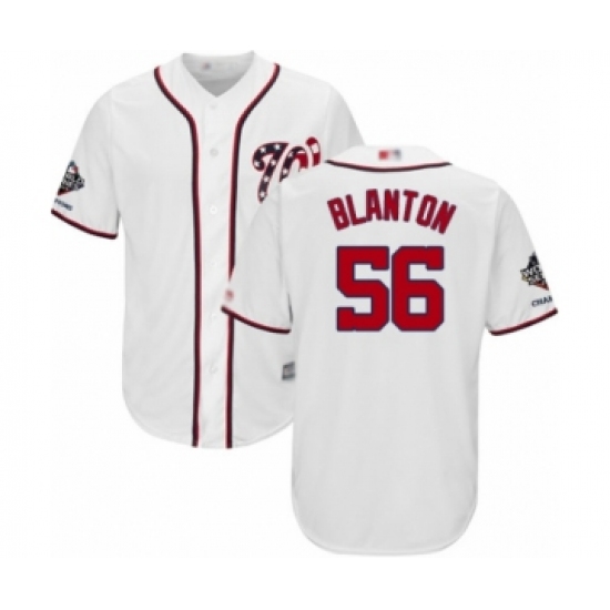 Youth Washington Nationals #56 Joe Blanton Authentic White Home Cool Base 2019 World Series Champions Baseball Jersey