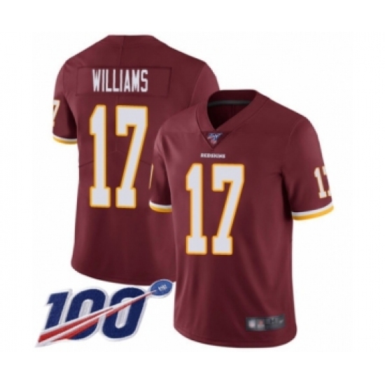 >Youth Washington Redskins #17 Doug Williams Burgundy Red Team Color Vapor Untouchable Limited Player 100th Season Football Jersey