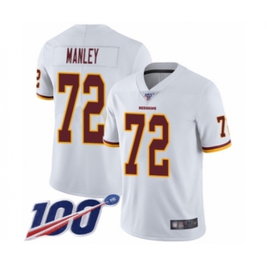 >Youth Washington Redskins #72 Dexter Manley White Vapor Untouchable Limited Player 100th Season Football Jersey