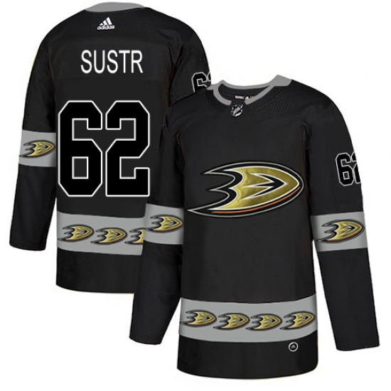 Men's Adidas Anaheim Ducks #62 Andrej Sustr Premier Black Team Logo Fashion NHL Jersey