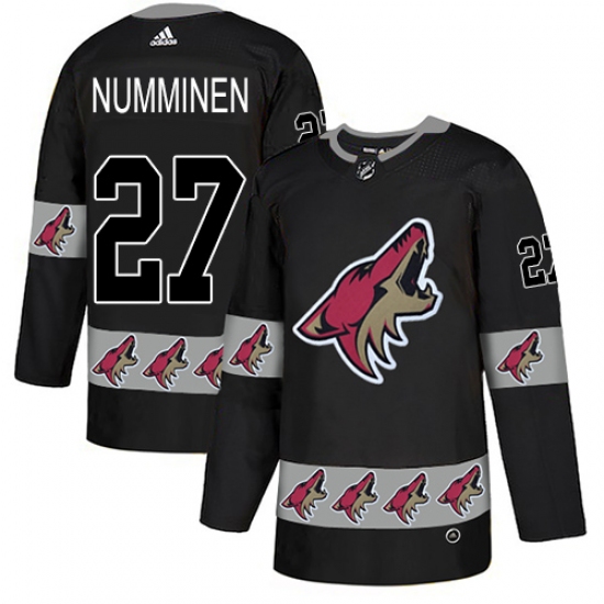 Men's Adidas Arizona Coyotes #27 Teppo Numminen Authentic Black Team Logo Fashion NHL Jersey