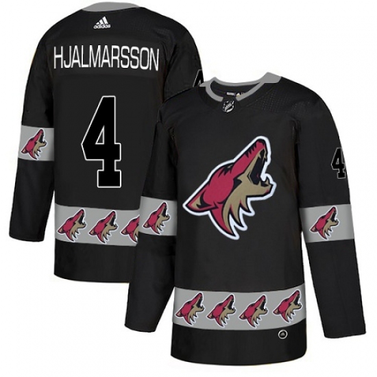 Men's Adidas Arizona Coyotes #4 Niklas Hjalmarsson Authentic Black Team Logo Fashion NHL Jersey