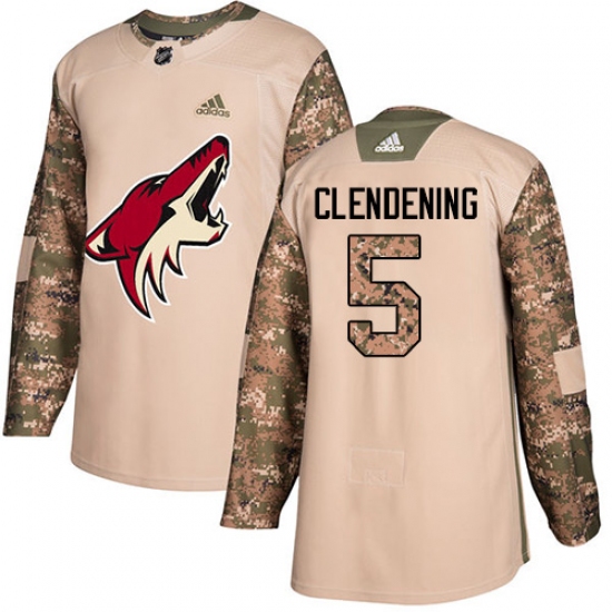 >Men's Adidas Arizona Coyotes #5 Adam Clendening Authentic Camo Veterans Day Practice NHL Jersey