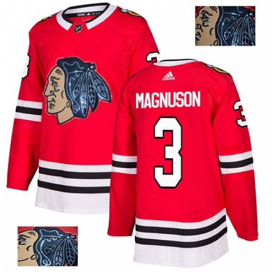 Men's Adidas Chicago Blackhawks #3 Keith Magnuson Authentic Red Fashion Gold NHL Jersey