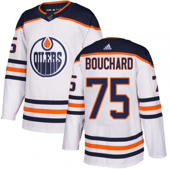 >Men's Adidas Edmonton Oilers #75 Evan Bouchard Authentic White Away NHL Jersey