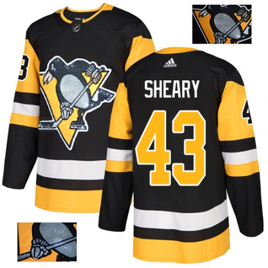 Men's Adidas Pittsburgh Penguins #43 Conor Sheary Authentic Black 1917-2017 100th Anniversary NHL Jersey
