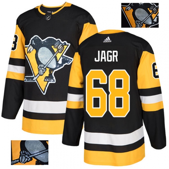 Men's Adidas Pittsburgh Penguins #68 Jaromir Jagr Authentic Black Team Logo Fashion NHL Jersey