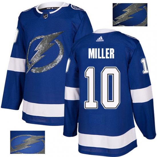 >Men's Adidas Tampa Bay Lightning #10 J.T. Miller Authentic Royal Blue Fashion Gold NHL Jersey