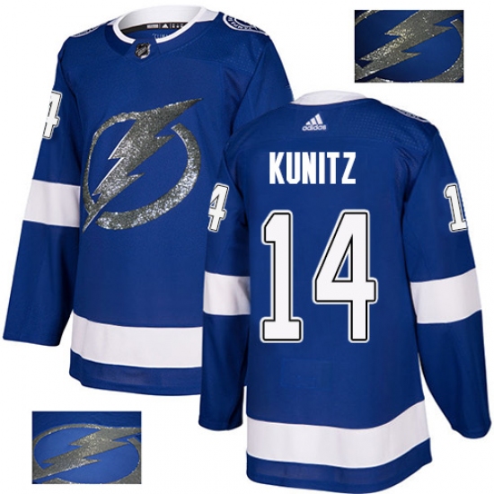 Men's Adidas Tampa Bay Lightning #14 Chris Kunitz Authentic Royal Blue Fashion Gold NHL Jersey