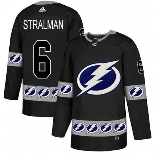 Men's Adidas Tampa Bay Lightning #6 Anton Stralman Authentic Black Team Logo Fashion NHL Jersey