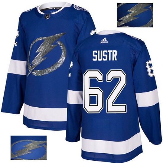Men's Adidas Tampa Bay Lightning #62 Andrej Sustr Authentic Royal Blue Fashion Gold NHL Jersey