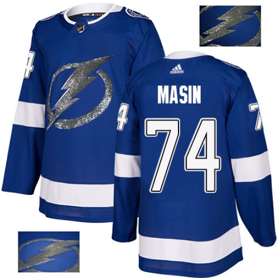 Men's Adidas Tampa Bay Lightning #74 Dominik Masin Authentic Royal Blue Fashion Gold NHL Jersey