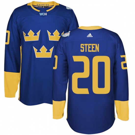 Men's Adidas Team Sweden #20 Alexander Steen Authentic Royal Blue Away 2016 World Cup of Hockey Jersey