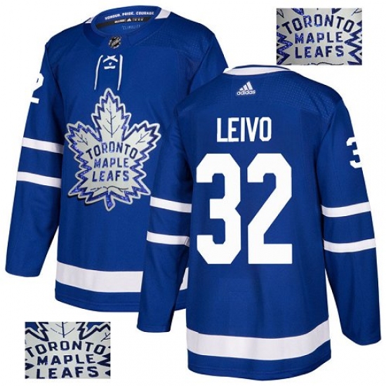 >Men's Adidas Toronto Maple Leafs #32 Josh Leivo Authentic Royal Blue Fashion Gold NHL Jersey