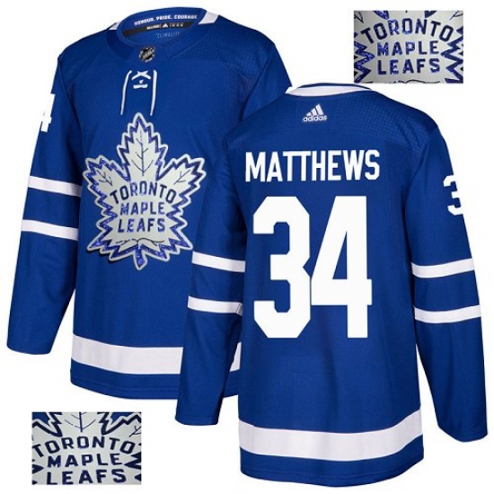 Men's Adidas Toronto Maple Leafs #34 Auston Matthews Authentic Royal Blue Fashion Gold NHL Jersey