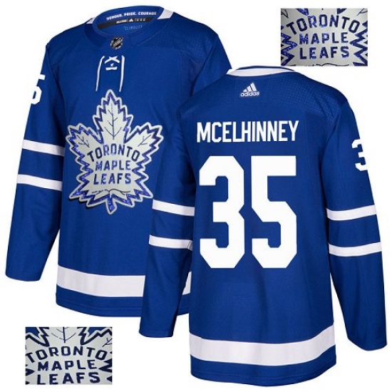 >Men's Adidas Toronto Maple Leafs #35 Curtis McElhinney Authentic Royal Blue Fashion Gold NHL Jersey