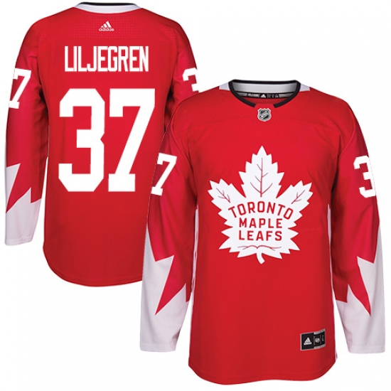 Men's Adidas Toronto Maple Leafs #37 Timothy Liljegren Authentic Red Alternate NHL Jersey