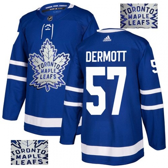 Men's Adidas Toronto Maple Leafs #57 Travis Dermott Authentic Royal Blue Fashion Gold NHL Jersey