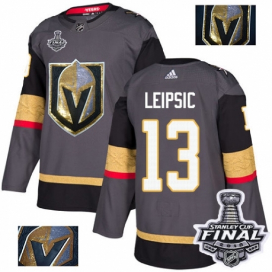 Men's Adidas Vegas Golden Knights #13 Brendan Leipsic Authentic Gray Home 2018 Stanley Cup Final NHL Jersey