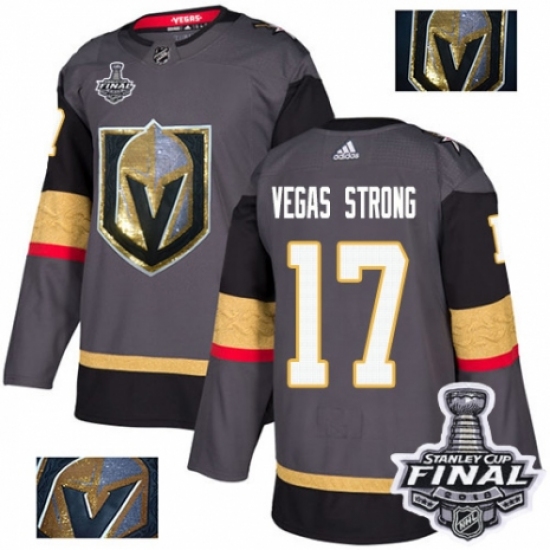 Men's Adidas Vegas Golden Knights #17 Vegas Strong Authentic Gray Fashion Gold 2018 Stanley Cup Final NHL Jersey
