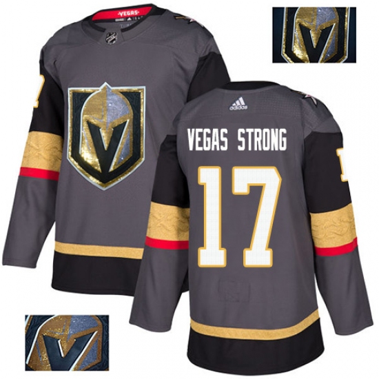 Men's Adidas Vegas Golden Knights #17 Vegas Strong Authentic Gray Fashion Gold NHL Jersey
