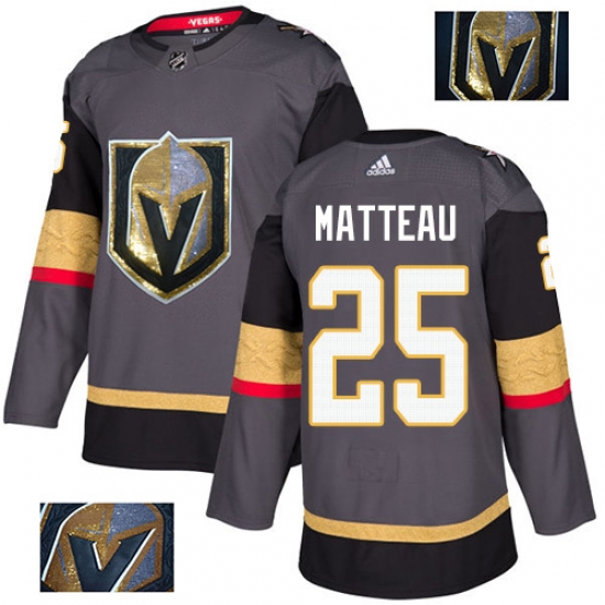 >Men's Adidas Vegas Golden Knights #25 Stefan Matteau Authentic Gray Fashion Gold NHL Jersey