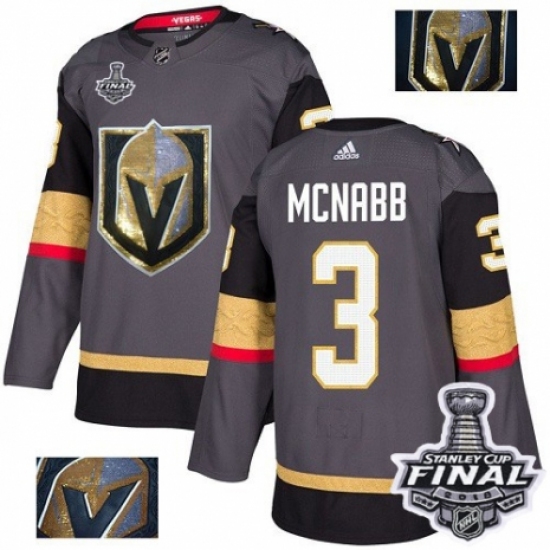 Men's Adidas Vegas Golden Knights #3 Brayden McNabb Authentic Gray Fashion Gold 2018 Stanley Cup Final NHL Jersey