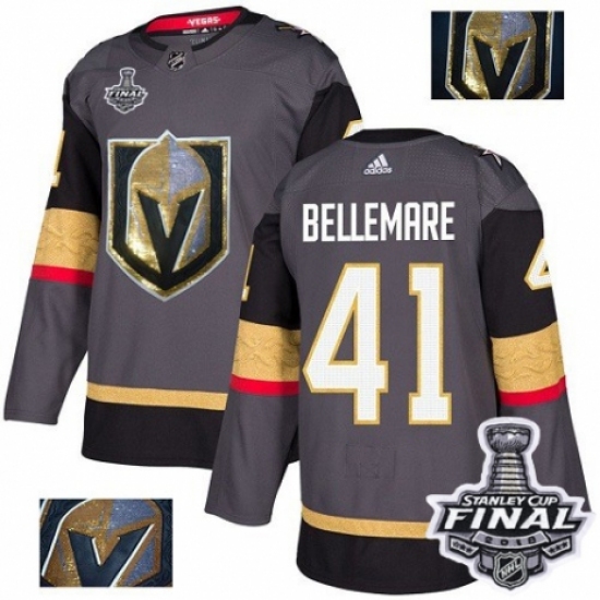 Men's Adidas Vegas Golden Knights #41 Pierre-Edouard Bellemare Authentic Gray Fashion Gold 2018 Stanley Cup Final NHL Jersey