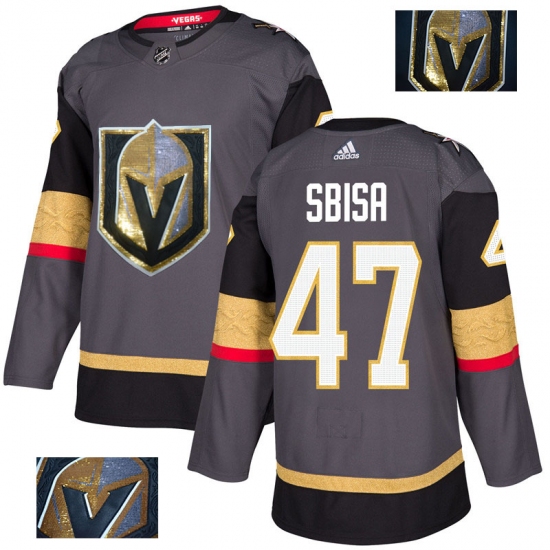 Men's Adidas Vegas Golden Knights #47 Luca Sbisa Authentic Gray Fashion Gold 2018 Stanley Cup Final NHL Jersey
