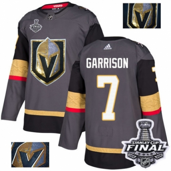 >Men's Adidas Vegas Golden Knights #7 Jason Garrison Authentic Gray Fashion Gold 2018 Stanley Cup Final NHL Jersey