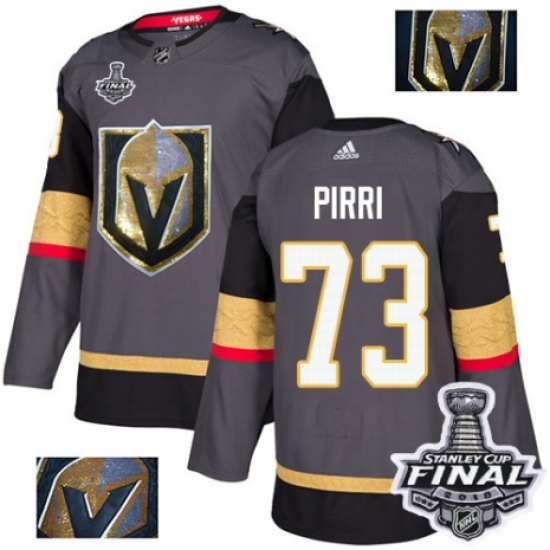 Men's Adidas Vegas Golden Knights #73 Brandon Pirri Authentic Gray Home 2018 Stanley Cup Final NHL Jersey