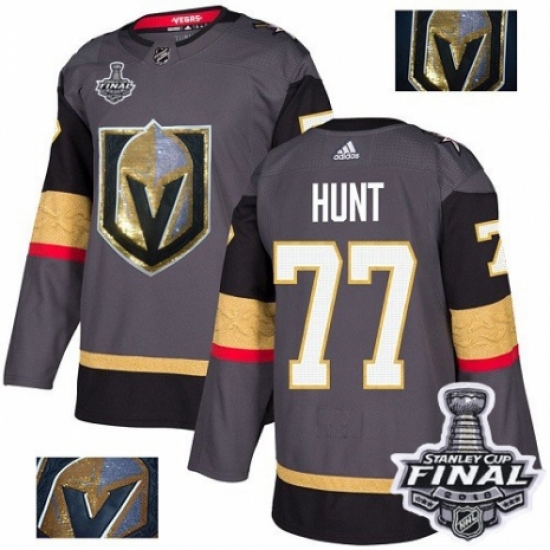 >Men's Adidas Vegas Golden Knights #77 Brad Hunt Authentic Gray Fashion Gold 2018 Stanley Cup Final NHL Jersey