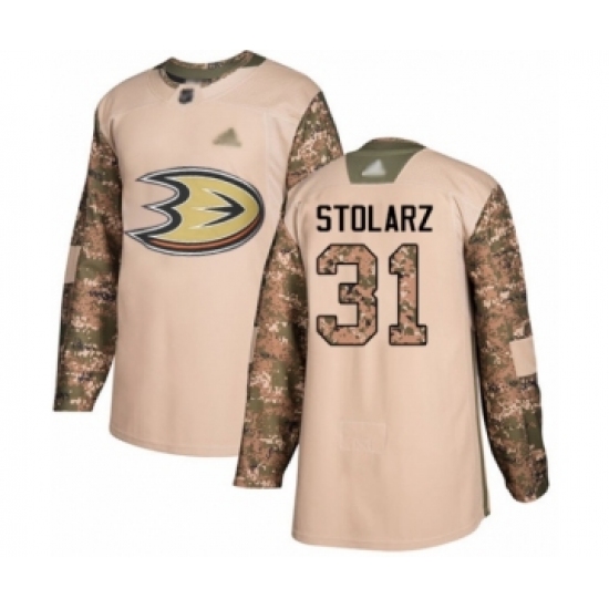 Men's Anaheim Ducks #31 Anthony Stolarz Authentic Camo Veterans Day Practice Hockey Jersey