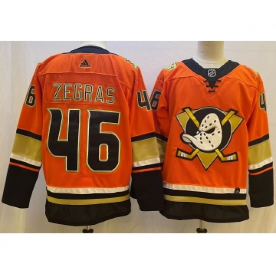 >Men's Anaheim Ducks #46 Trevor Zegras Orange Authentic Adidas Jersey