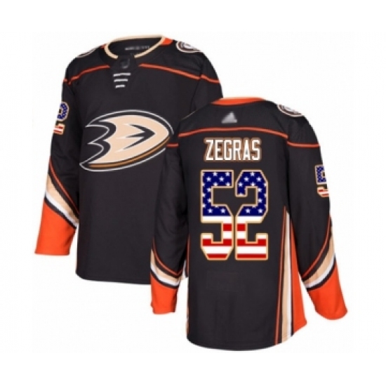 Men's Anaheim Ducks #52 Trevor Zegras Authentic Black USA Flag Fashion Hockey Jersey