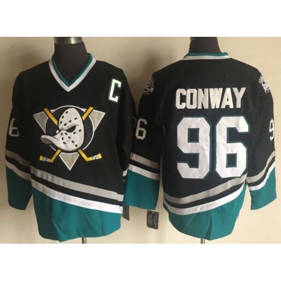 Men's Anaheim Ducks #96 Charlie Conway Mighty Ducks Movie Black Green Ice Hockey Jerseys
