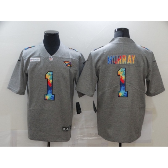 >Men's Arizona Cardinals #1 Kyler Murray Gray Rainbow Version Nike Limited Jersey