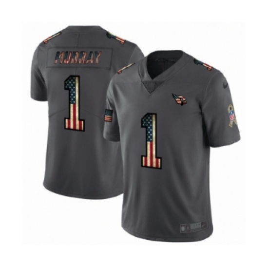 >Men's Arizona Cardinals #1 Kyler Murray Limited Black USA Flag 2019 Salute To Service Football Jersey