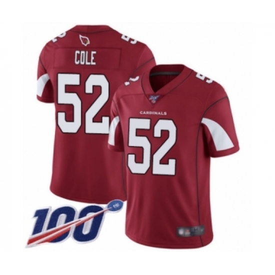 >Men's Arizona Cardinals #52 Mason Cole Red Team Color Vapor Untouchable Limited Player 100th Season Football Jersey