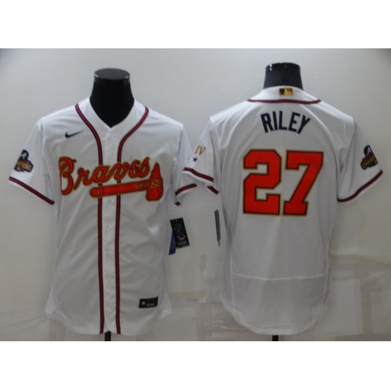 Men's Atlanta Braves #27 Austin Riley Nike White 2022 Gold Program Authentic Player Jersey