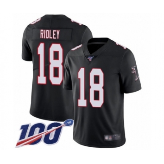 >Men's Atlanta Falcons #18 Calvin Ridley Black Alternate Vapor Untouchable Limited Player 100th Season Football Jersey