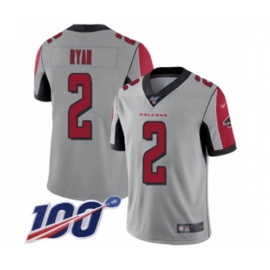 Men's Atlanta Falcons #2 Matt Ryan Limited Silver Inverted Legend 100th Season Football Jersey