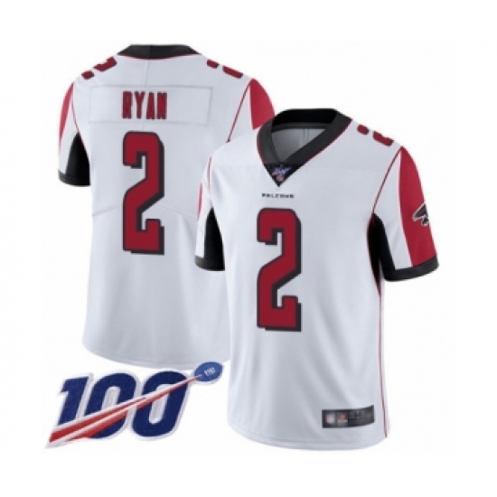 Men's Atlanta Falcons #2 Matt Ryan White Vapor Untouchable Limited Player 100th Season Football Jersey