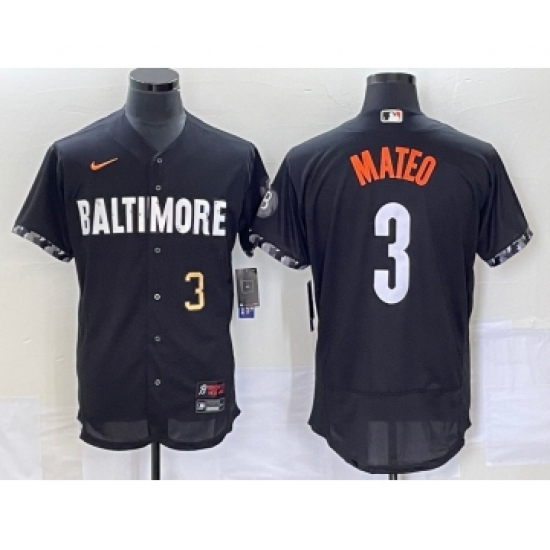 >Men's Baltimore Orioles #3 Jorge Mateo Number Black 2023 City Connect Flex Base Stitched Jersey 2