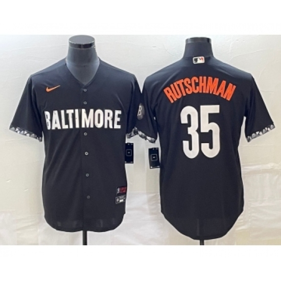 >Men's Baltimore Orioles #35 Adley Rutschman Black 2023 City Connect Cool Base Stitched Jersey 1
