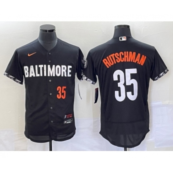 >Men's Baltimore Orioles #35 Adley Rutschman Number Black 2023 City Connect Flex Base Stitched Jersey 1