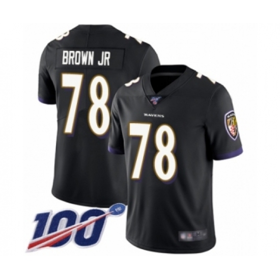 Men's Baltimore Ravens #78 Orlando Brown Jr. Black Alternate Vapor Untouchable Limited Player 100th Season Football Jersey